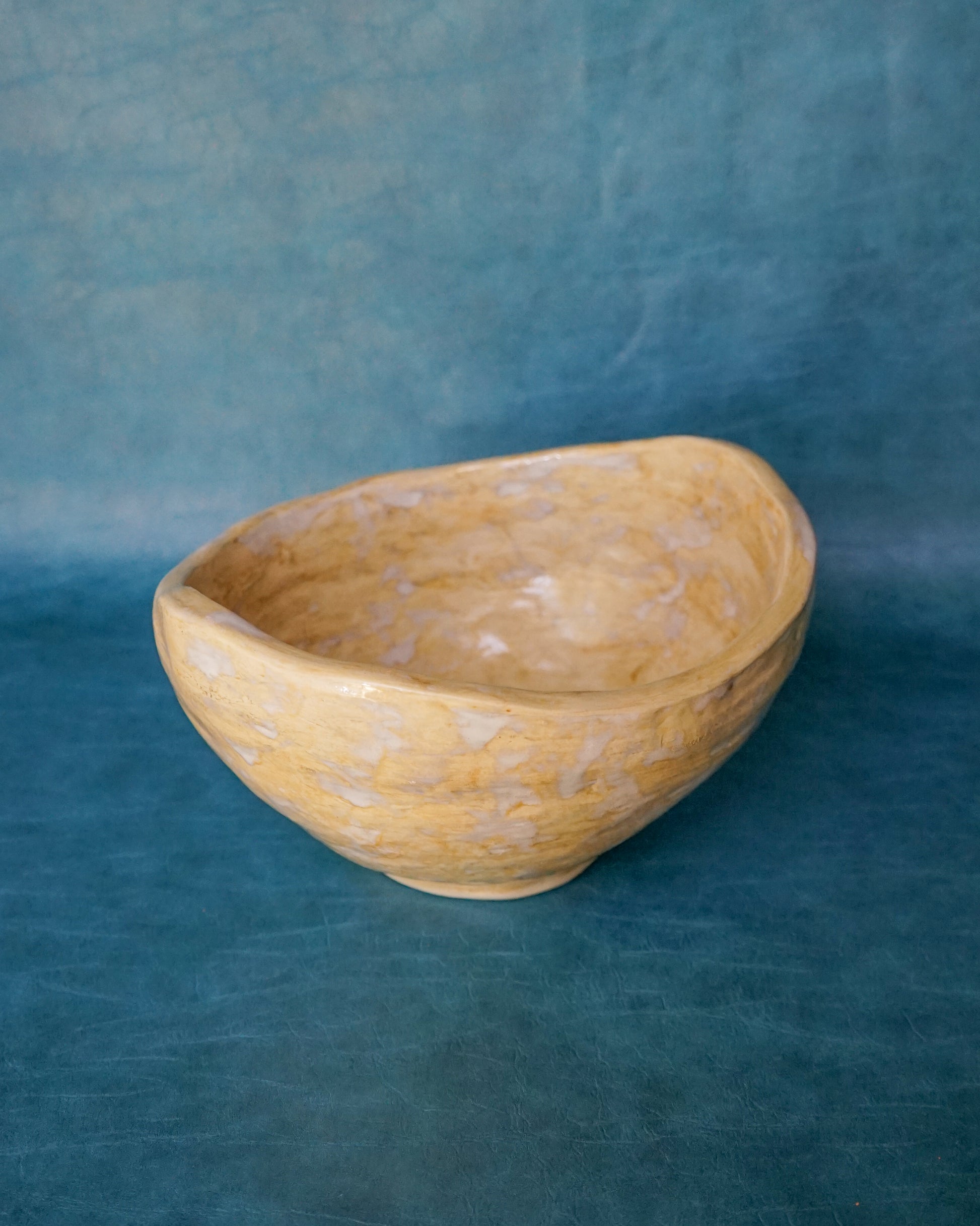 Hand built stoneware made with B-mix clay. Glaze in sandy buttercup and glossy white painted on with a brush.