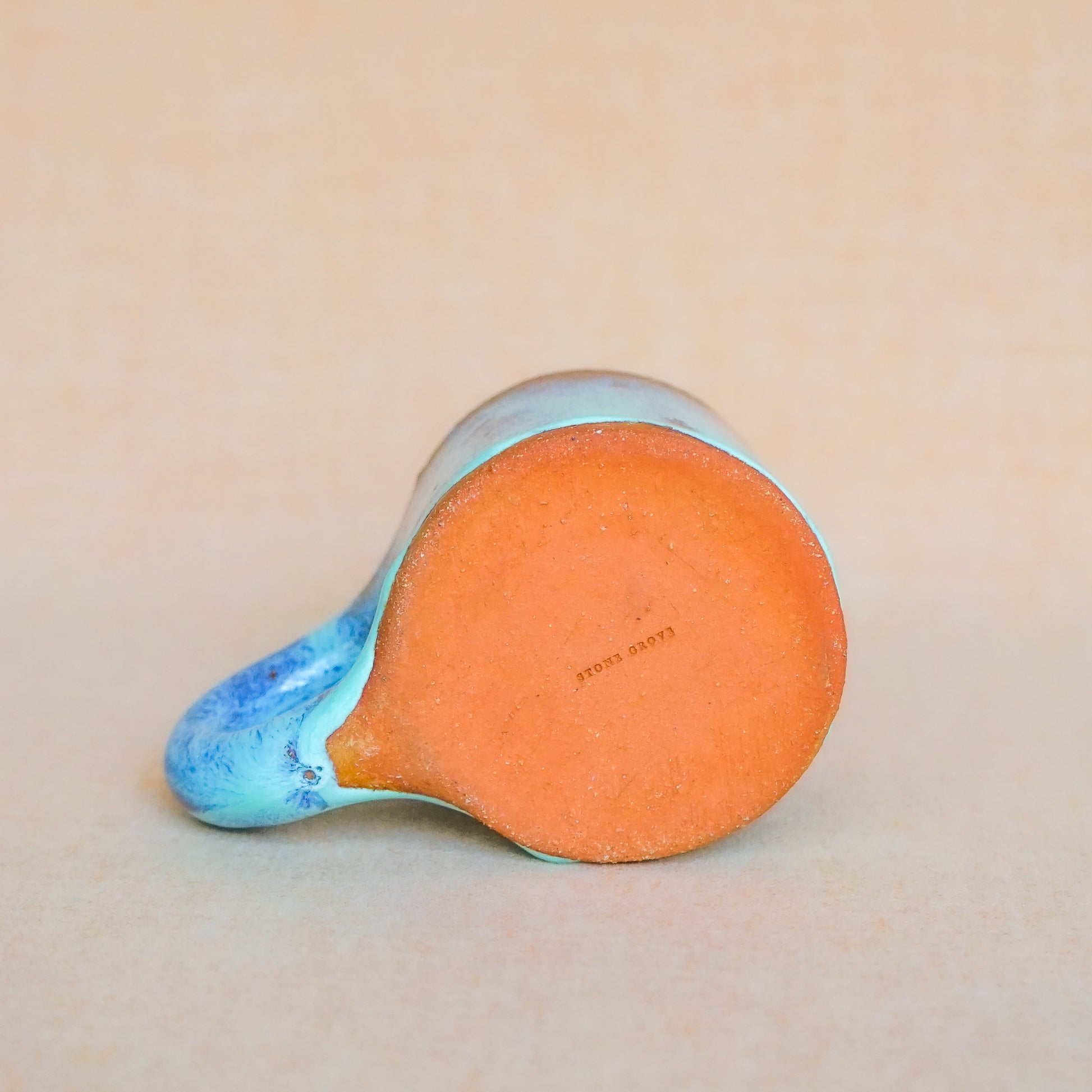 Hand built stoneware made with Santa Fe clay. Glaze in aqua + nebula painted on with a brush.