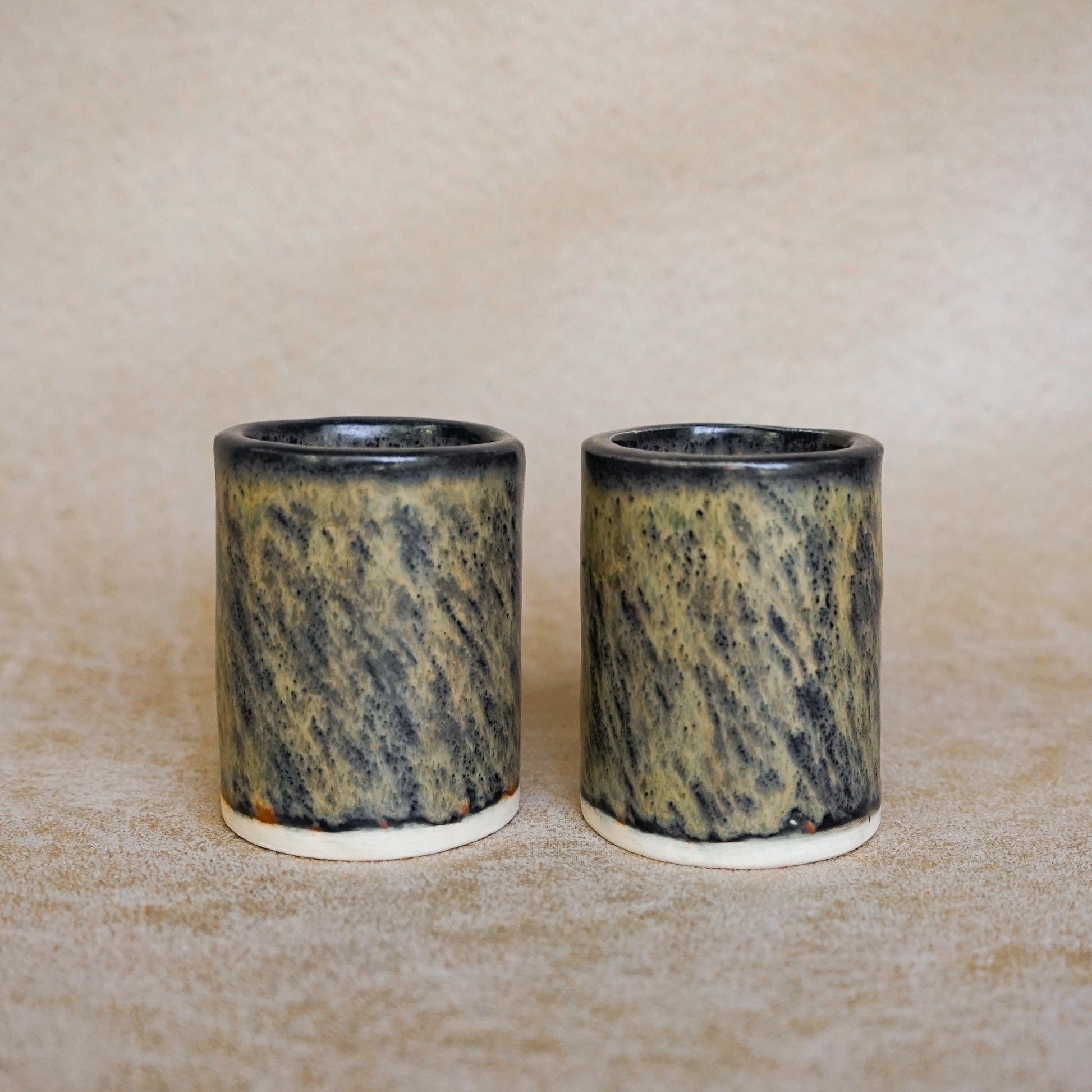 Measures 3” tall x 2.25” wide. Each cup holds up to 4 oz. Sold as a set of 2.
