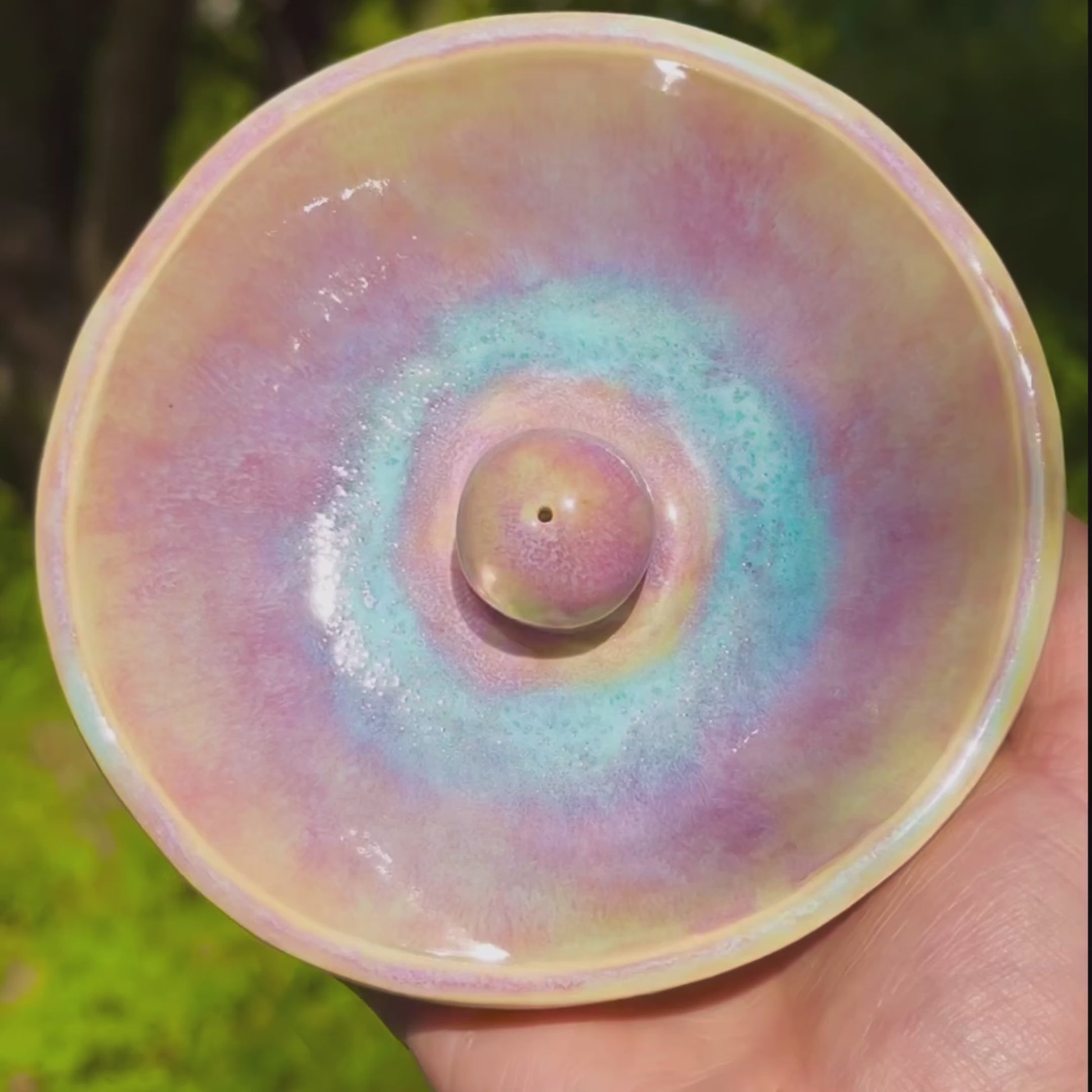 Hand built stoneware made with B-mix clay. Smooth glaze finish, hand painted on with a brush.