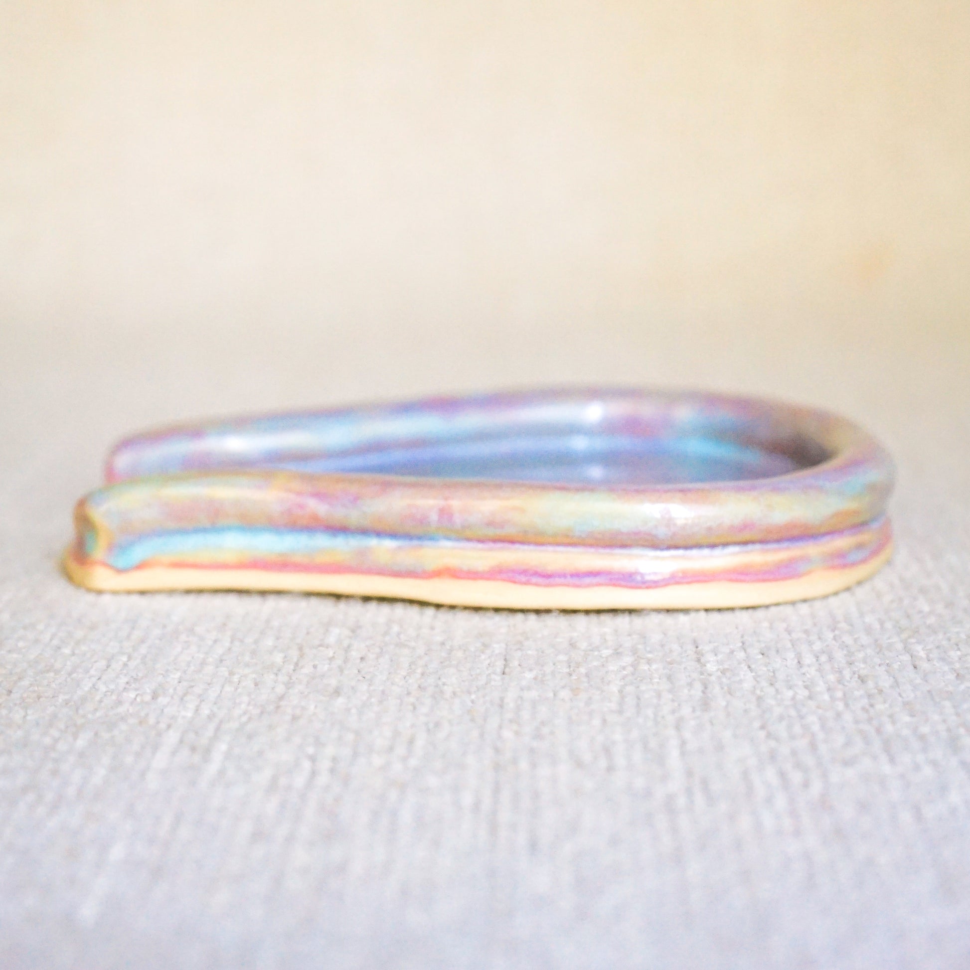 A hand painted spoon rest to add a pop of color to your kitchen. Each spoon rest is two toned and one of a kind.