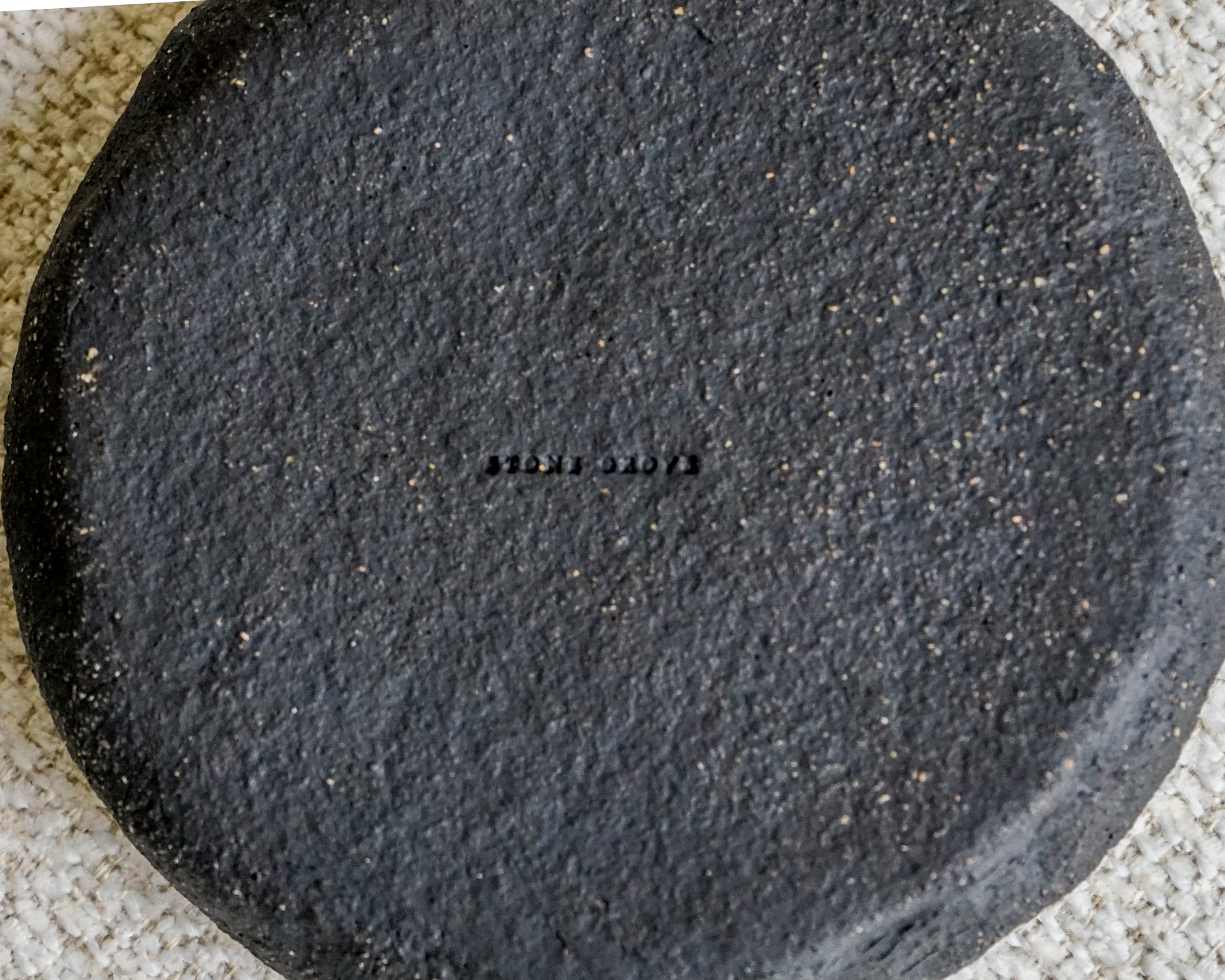 Hand built stoneware made with Dark Horse Clay. Glaze hand painted with a brush in aqua + brown.