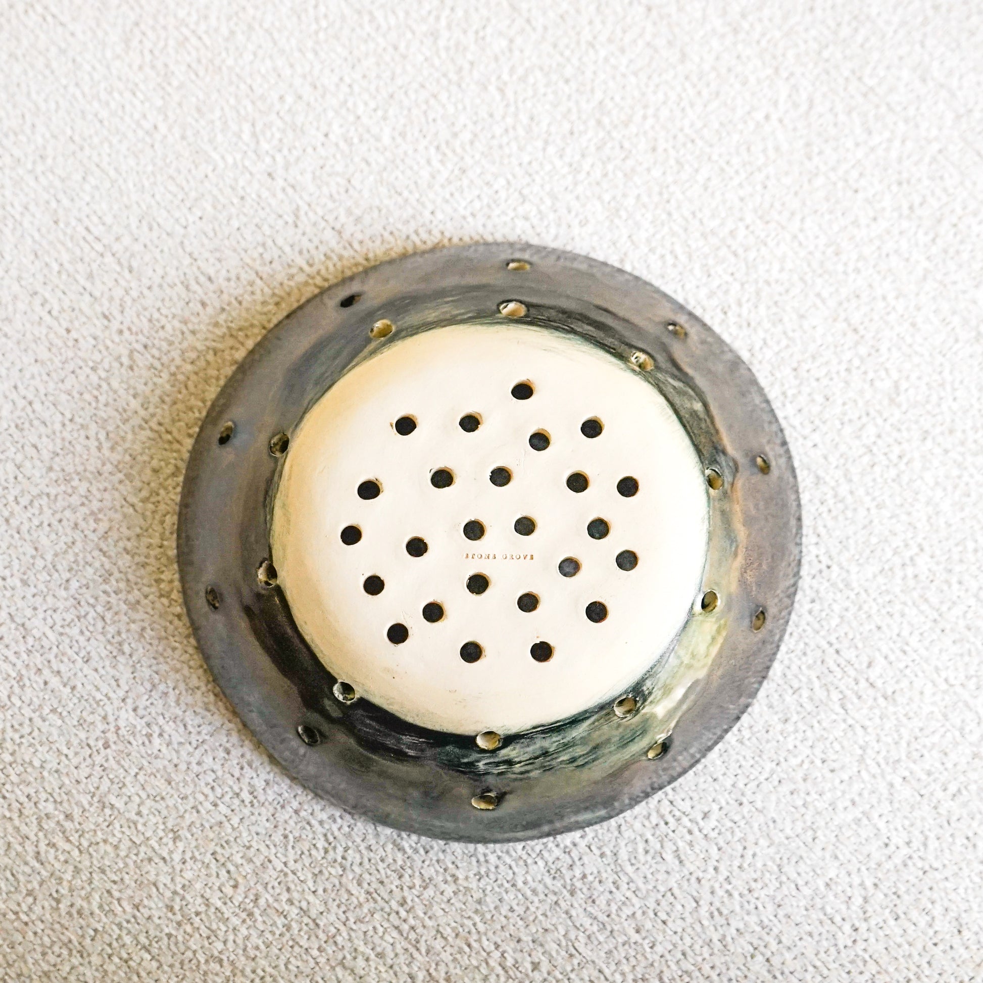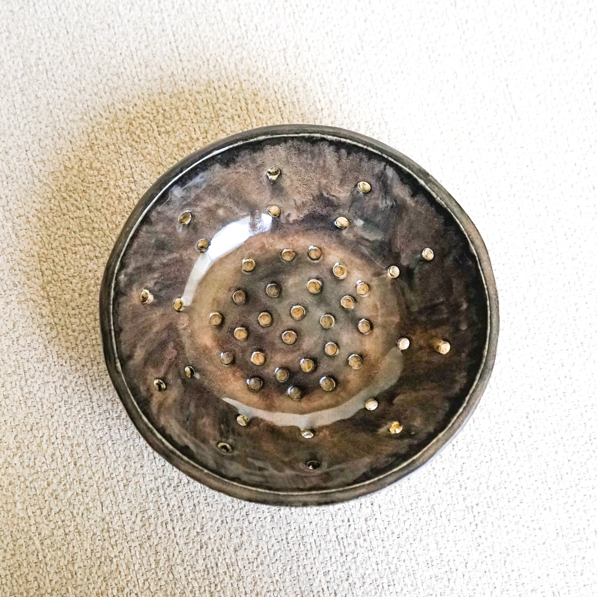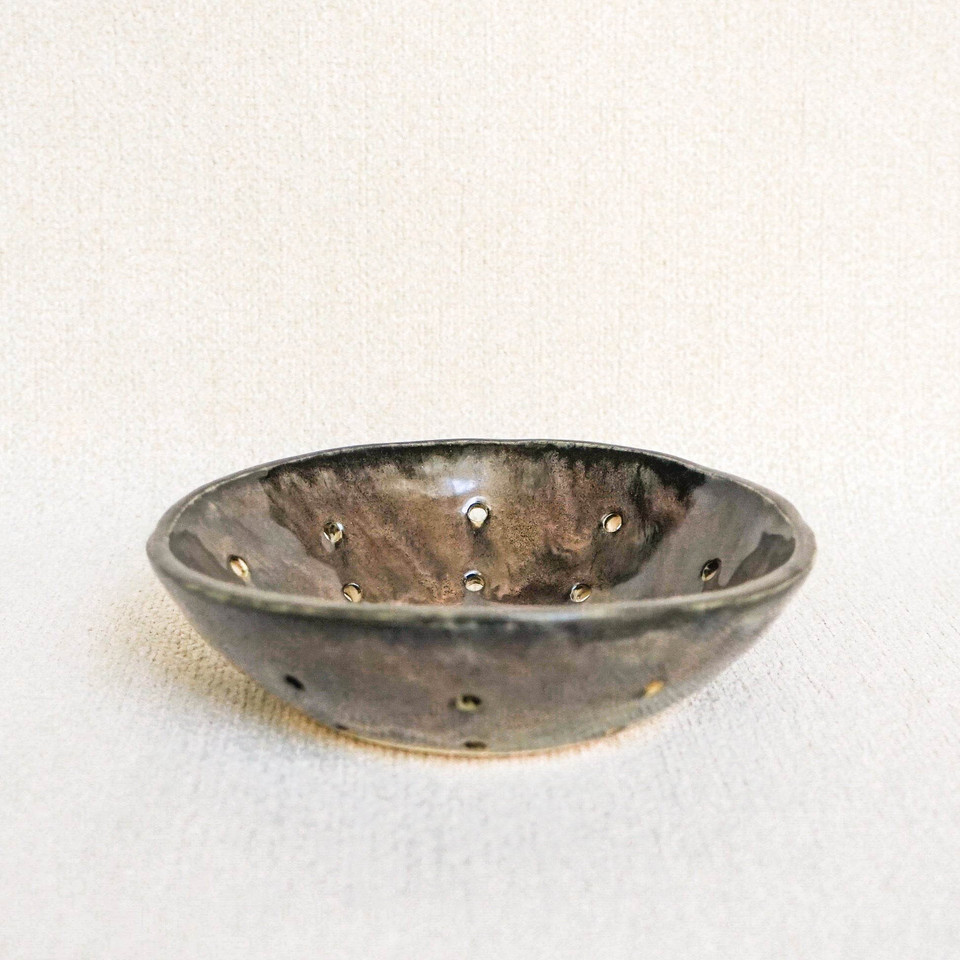 Hand built stoneware made with B-mix clay. Smooth glaze finish, hand painted on with a brush.
