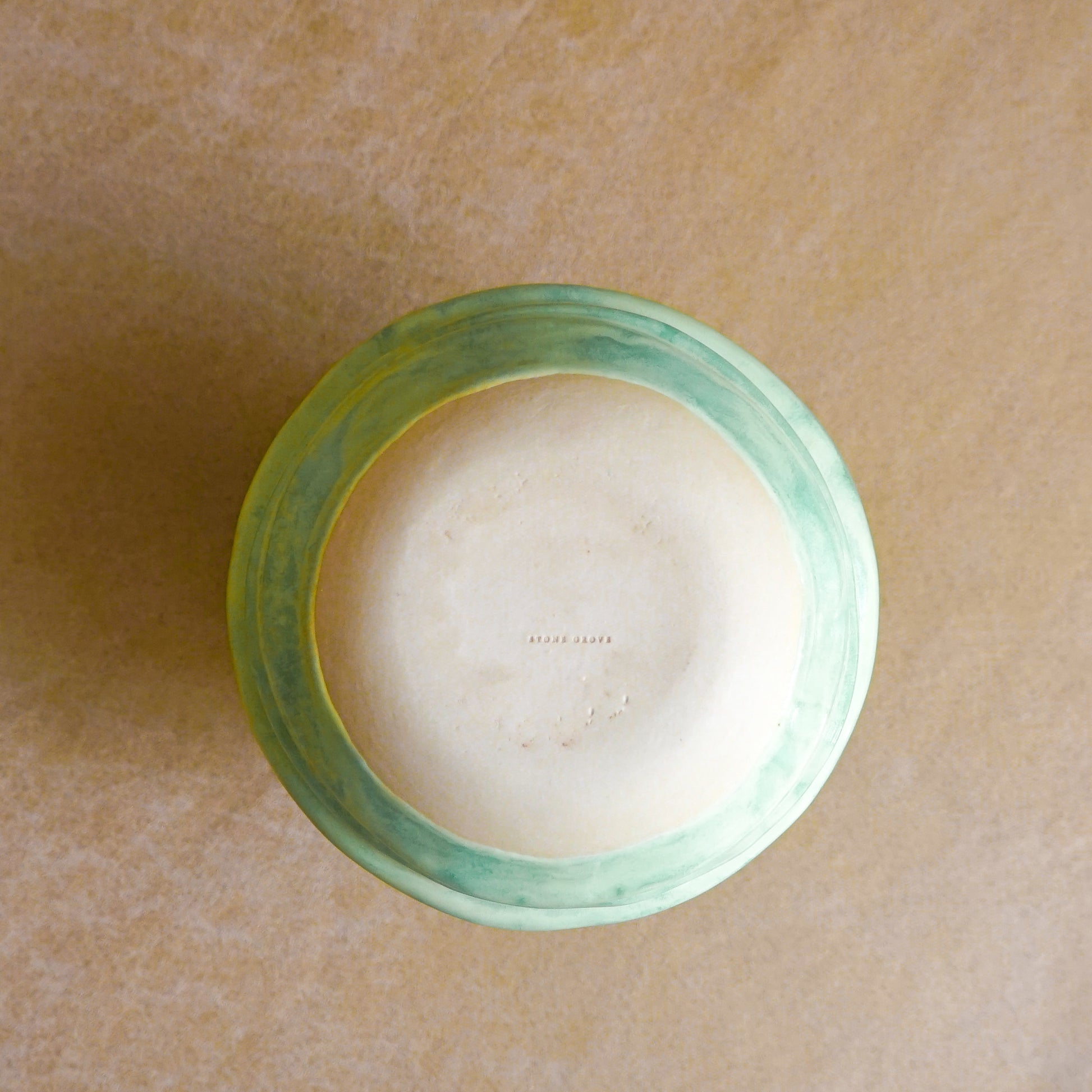 Hand built stoneware made with B-mix clay. Smooth glaze finish, hand painted on with a brush.