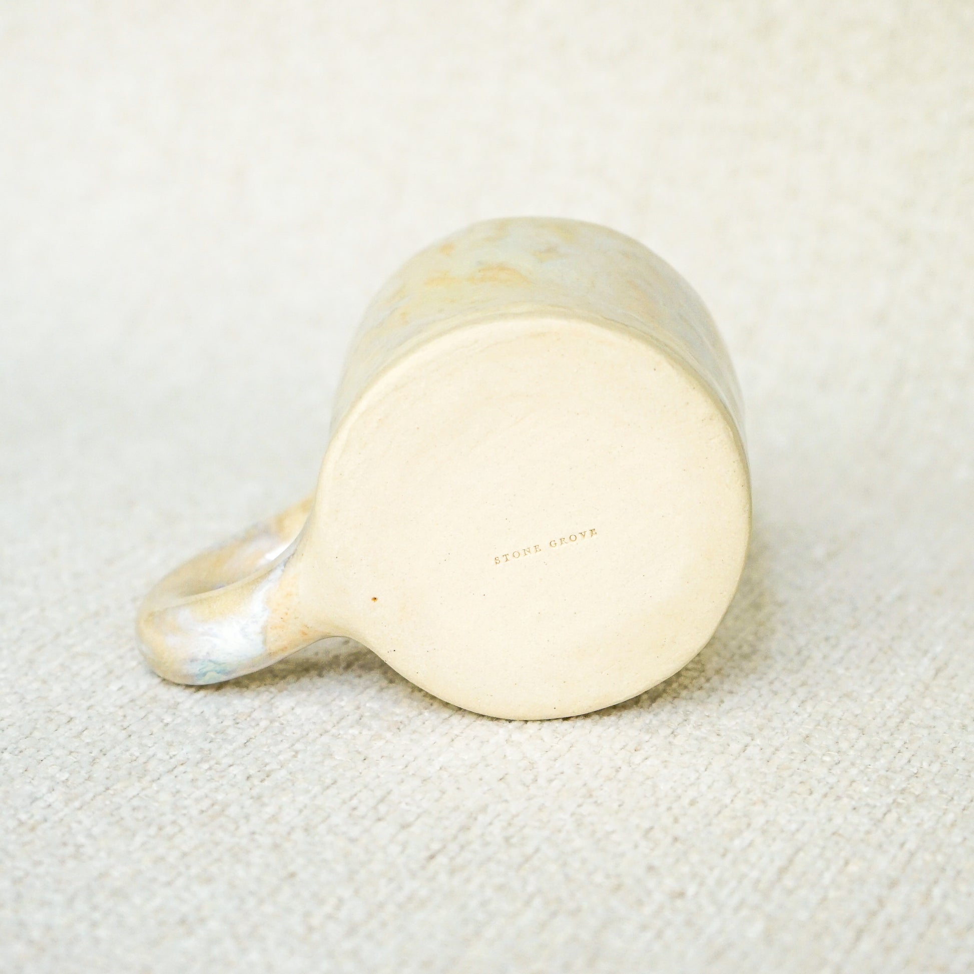 Hand built stoneware made with B-mix clay, hand painted glaze with nebula + sandy buttercup.