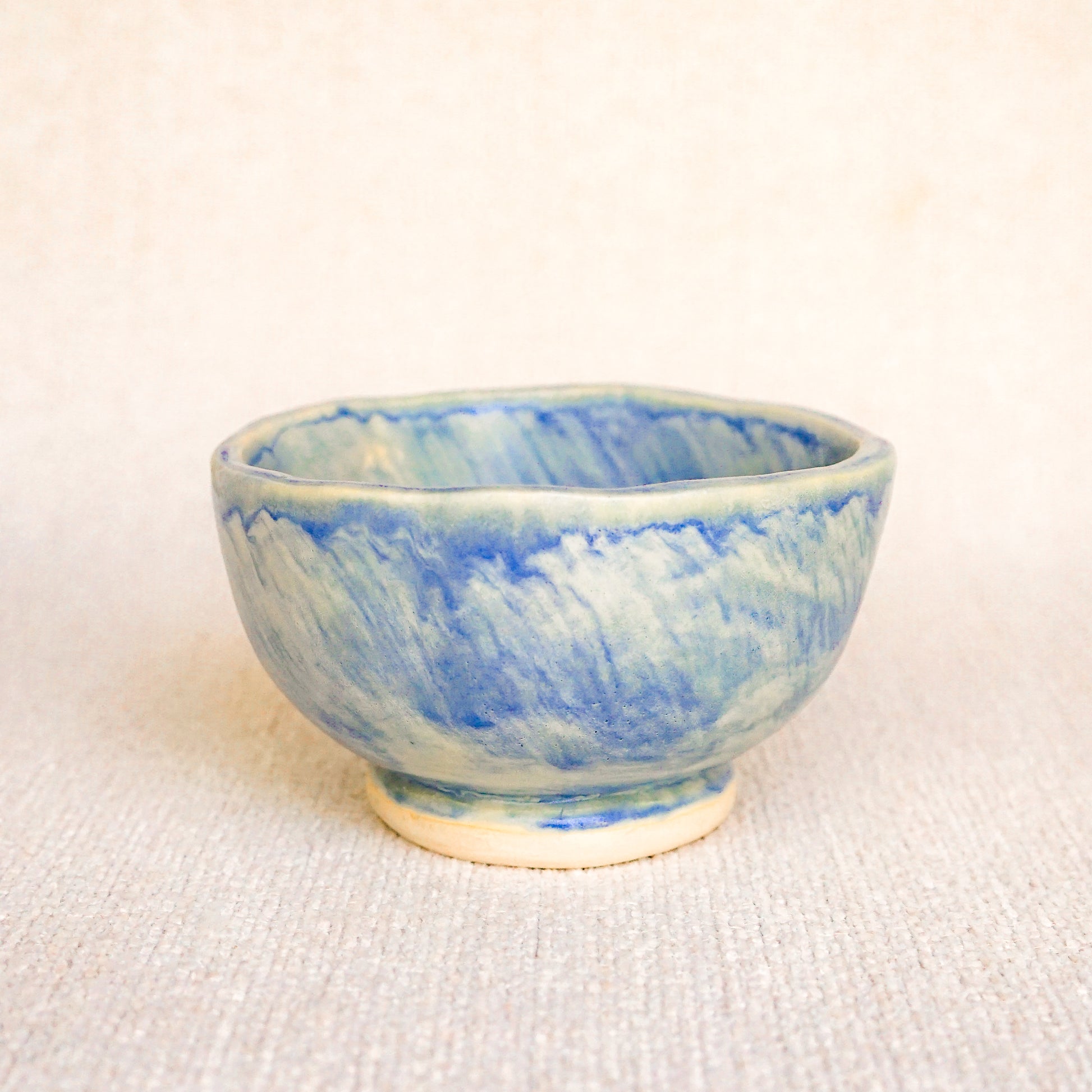 Hand built stoneware made with B-mix clay. Matte glaze finish, hand painted on with a brush.