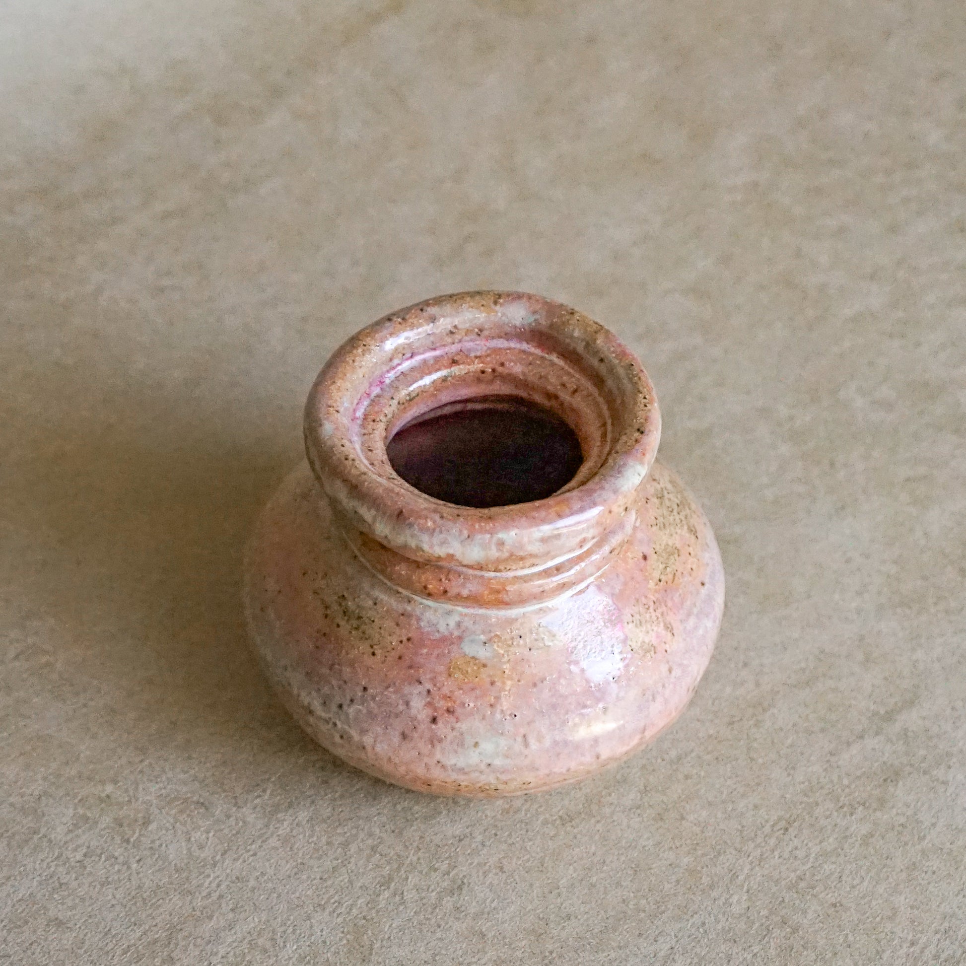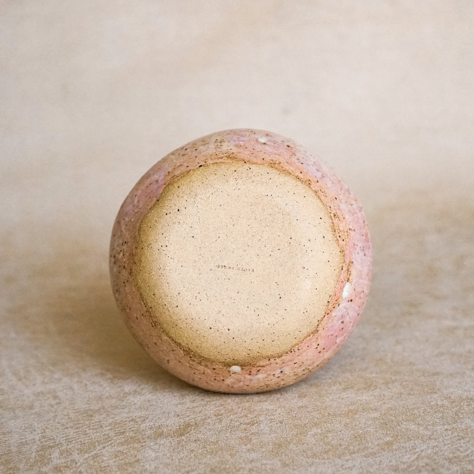 Hand built stoneware made with calico clay. Glaze in nebula + sang painted on with a brush.