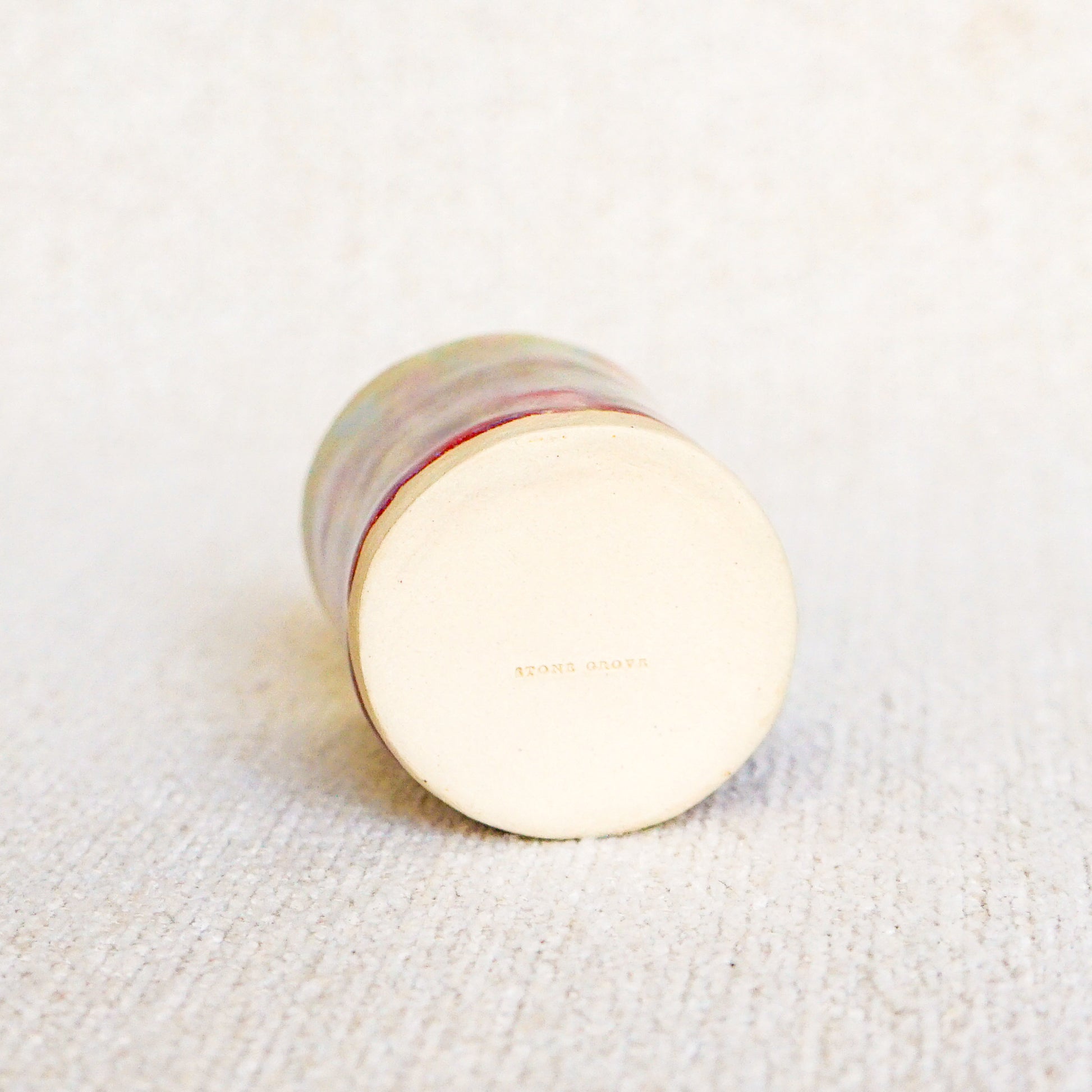 Hand built stoneware made with B-mix clay. Glaze hand painted with a brush.