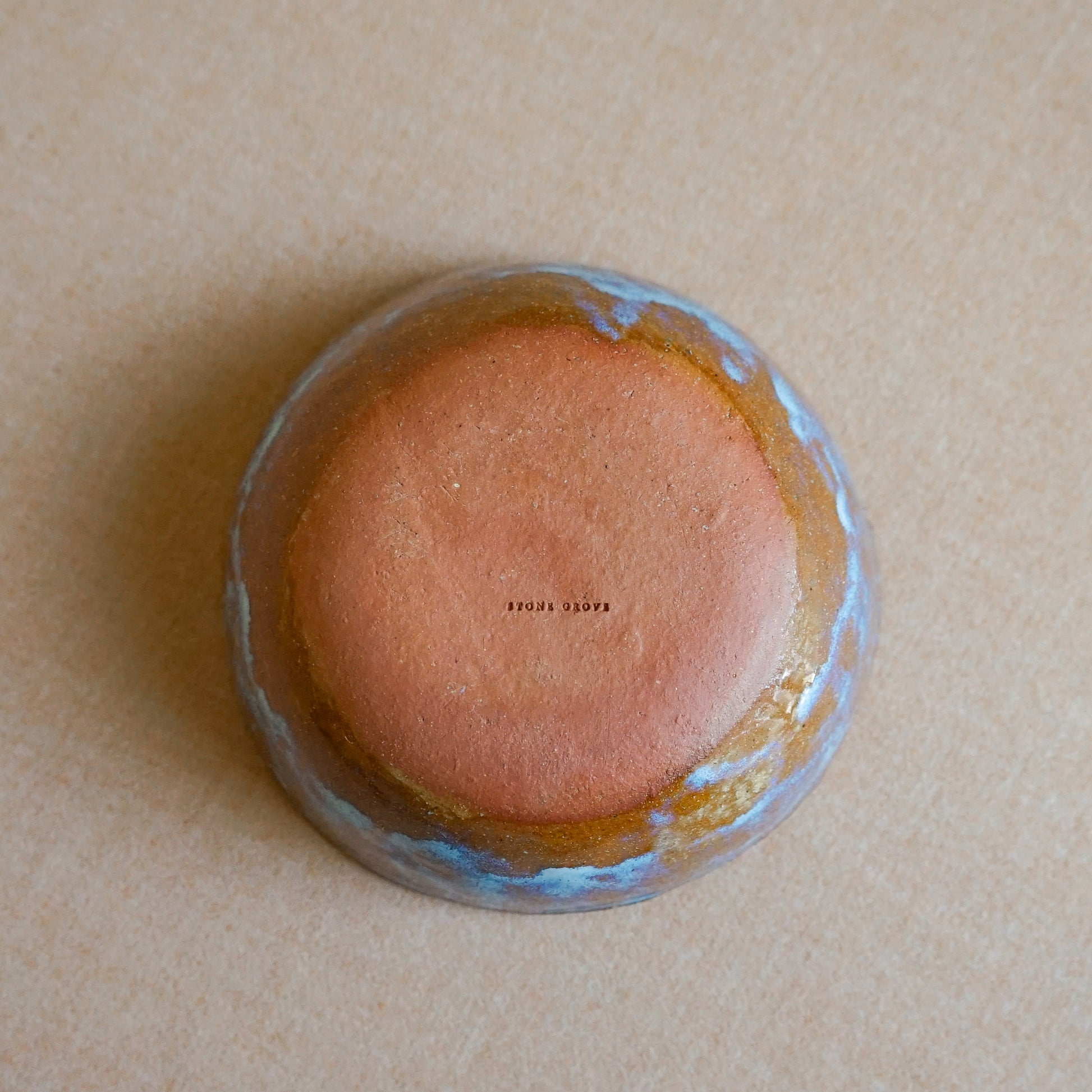 Hand built stoneware made with Santa Fe clay. Glaze in aqua + nebula hand painted on with a brush.